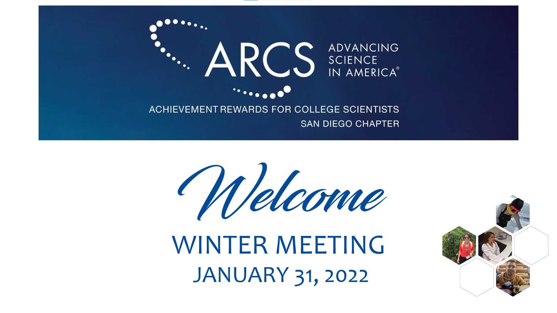 The Fall General Meeting is a particular favorite for ARCS members, because much of it is devoted to meeting our new Scholars. Given the ongoing pandemic, we had no choice but to hold the meeting via Zoom, but that did not dampen the enthusiasm and excitement among those who attended. This year we were delighted to hear from 32 new Scholars (SDSU-7; Scripps Research-5; UCSD-18; USD-2), each of whom gave a brief overview of their research and personal interests. As always, we were so impressed by their many accomplishments, their desire to give back to society, and their balanced approach to a healthy life. We look forward to getting to know them better during the year ahead.