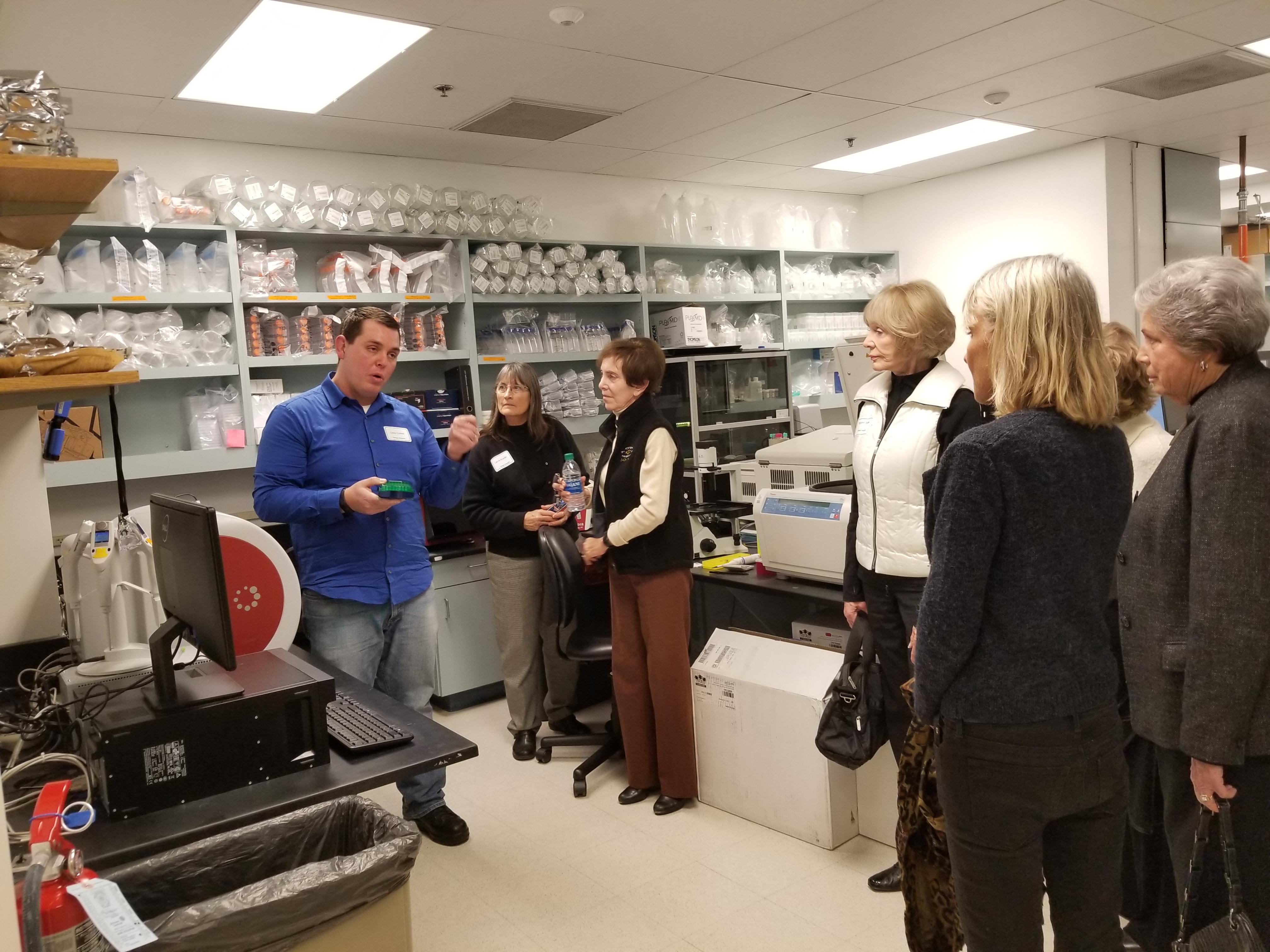 ARCS San Diego was treated to an amazing guided tour of several labs at La Jolla Institute for Immunology with two ARCS Scholars leading the way: Gabriel Ascui-Gac and Sonya Haupt. We also had a quick introduction to the newly opened John and Susan Major Center for Clinical Investigation, which has greatly expanded the Institute’s capacity to collect human blood samples, which are vital to study allergies, vaccines as well as infectious, autoimmune and neurodegenerative diseases.
